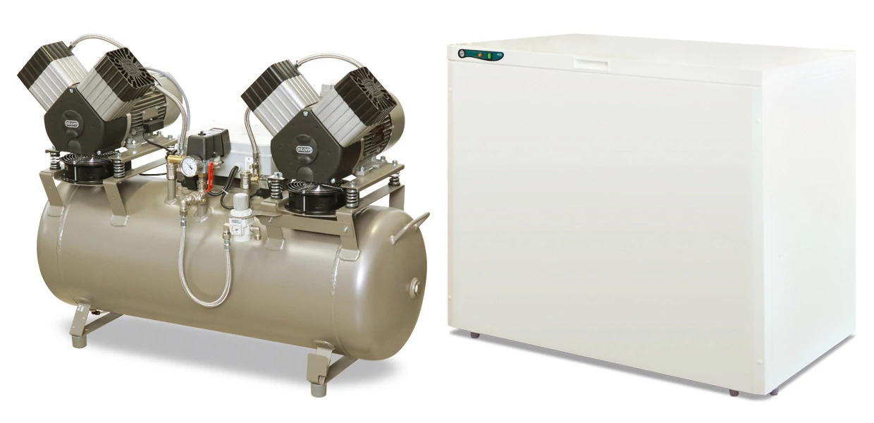 4 fogorvosi kezelőegységhez, hangszigetelő szekrénnyel, membrán szárítóval